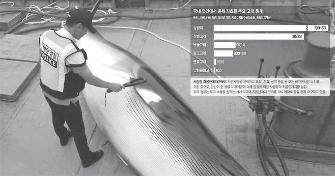 그는 “국내의 고래류 혼획에 대한 보고체계가 세계 최고 수준으로 잘 갖춰져 있다고 해도 지나치게 높은 수준”이라며 “혼획된 고래를 팔고 먹을 수 있기 때문에 빚어진 측면도 있다”고 덧붙였다.